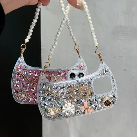 Funda de teléfono con ajuste de diamante hecho a mano a la moda para Iphone16 15pro fundas de pulsera para 14 Promax 12 13 funda de diseñador de lujo